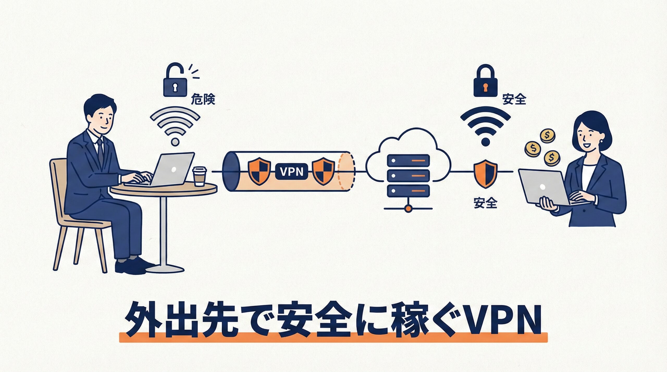 副業・フリーランスにVPNが必須な理由|外出先でも安全に稼ぐセキュリティ対策【2026年版】