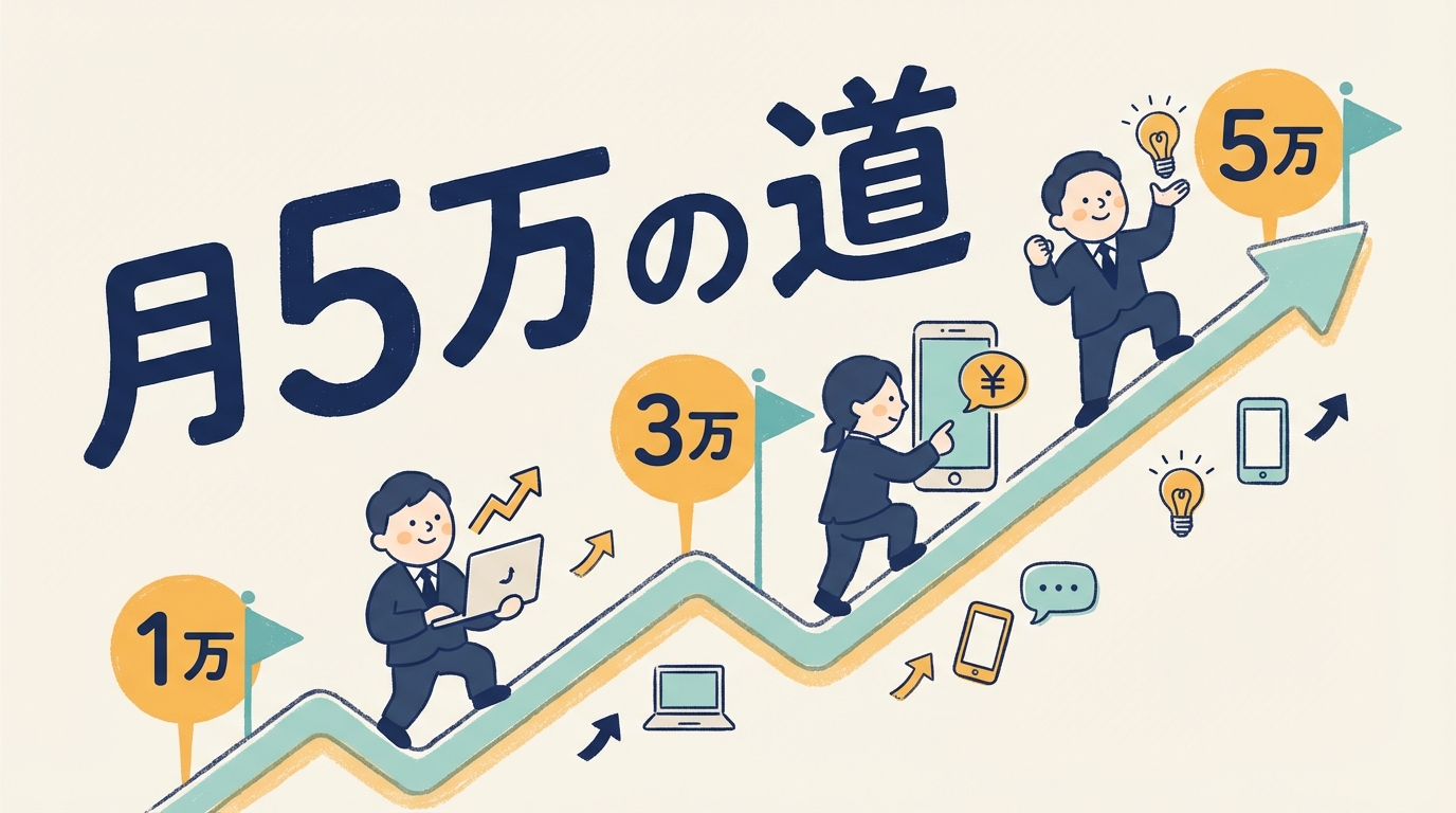 僕はこのロードマップを実行して、今では月5万円を安定して稼げるようになった。本業の給料にプラス5万円。これがあるだけで、生活の余裕も精神的な安定も段違いだ。